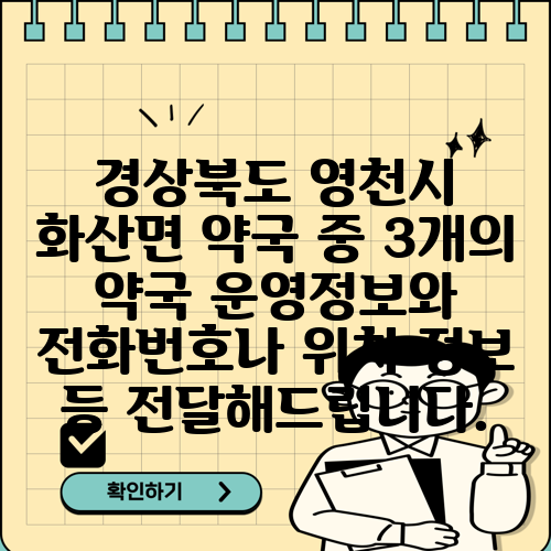 경상북도 영천시 화산면 약국 중 3개의 약국 운영정보와 전화번호나 위치 정보 등 전달해드립니다.