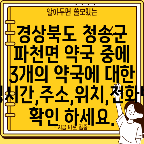 경상북도 청송군 파천면 약국 중에 3개의 약국에 대한 운영시간,주소,위치,전화번호 확인 하세요.