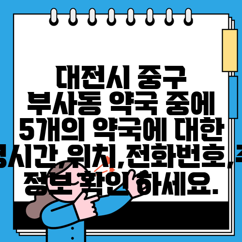 대전시 중구 부사동 약국 중에 5개의 약국에 대한 운영시간,위치,전화번호,주소 정보 확인 하세요.