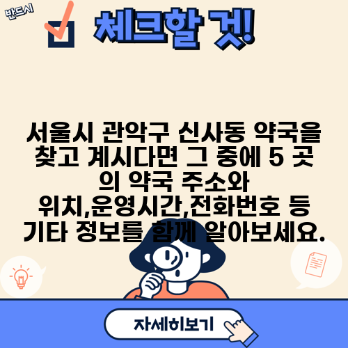 서울시 관악구 신사동 약국을 찾고 계시다면 그 중에 5 곳 의 약국 주소와 위치,운영시간,전화번호 등 기타 정보를 함께 알아보세요.