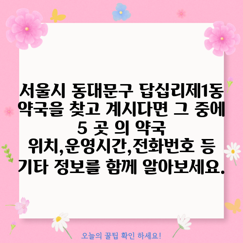 서울시 동대문구 답십리제1동 약국을 찾고 계시다면 그 중에 5 곳 의 약국 위치,운영시간,전화번호 등 기타 정보를 함께 알아보세요.