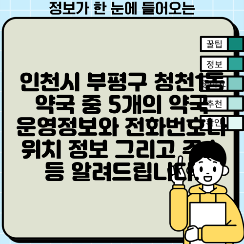 인천시 부평구 청천1동 약국 중 5개의 약국 운영정보와 전화번호나 위치 정보 그리고 주소 등 알려드립니다.