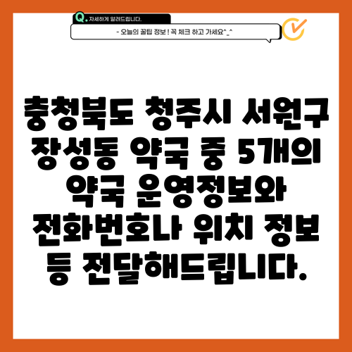 충청북도 청주시 서원구 장성동 약국 중 5개의 약국 운영정보와 전화번호나 위치 정보 등 전달해드립니다.