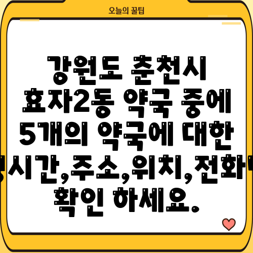 강원도 춘천시 효자2동 약국 중에 5개의 약국에 대한 운영시간,주소,위치,전화번호 확인 하세요.