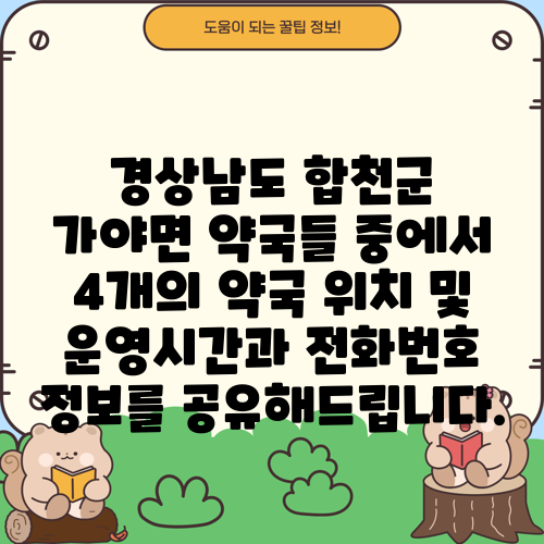경상남도 합천군 가야면 약국들 중에서 4개의 약국 위치 및 운영시간과 전화번호 정보를 공유해드립니다.