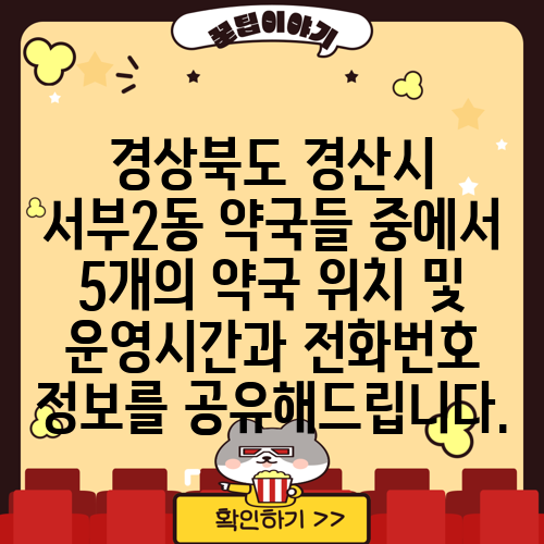 경상북도 경산시 서부2동 약국들 중에서 5개의 약국 위치 및 운영시간과 전화번호 정보를 공유해드립니다.