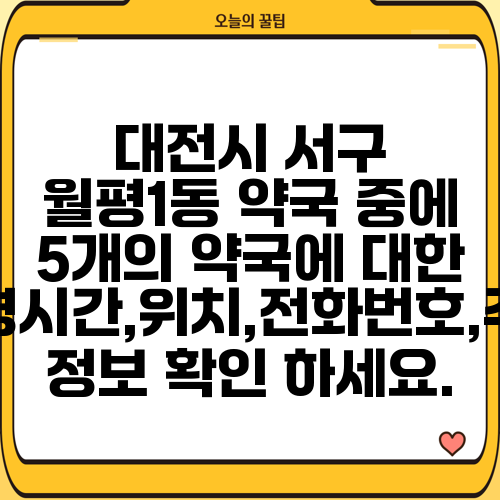 대전시 서구 월평1동 약국 중에 5개의 약국에 대한 운영시간,위치,전화번호,주소 정보 확인 하세요.