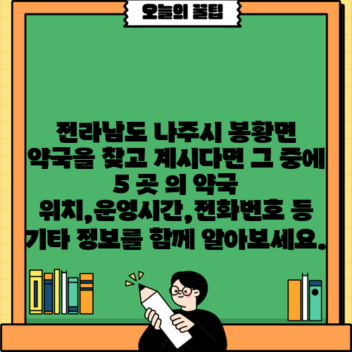 전라남도 나주시 봉황면 약국을 찾고 계시다면 그 중에 5 곳 의 약국 위치,운영시간,전화번호 등 기타 정보를 함께 알아보세요.