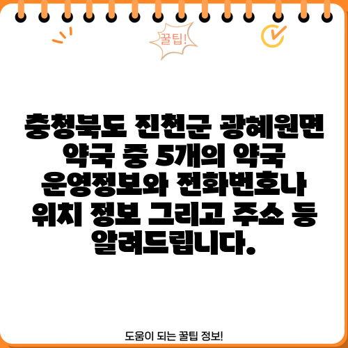 충청북도 진천군 광혜원면 약국 중 5개의 약국 운영정보와 전화번호나 위치 정보 그리고 주소 등 알려드립니다.