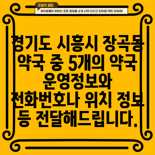 경기도 시흥시 장곡동 약국 중 5개의 약국 운영정보와 전화번호나 위치 정보 등 전달해드립니다.