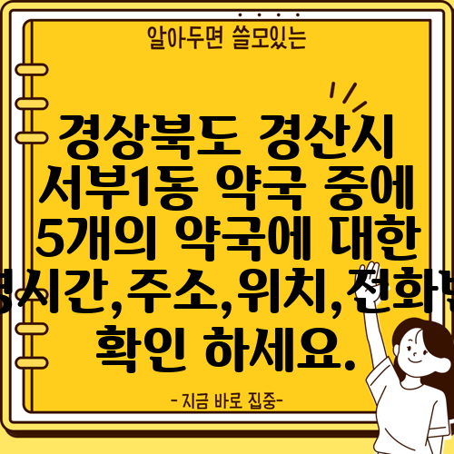 경상북도 경산시 서부1동 약국 중에 5개의 약국에 대한 운영시간,주소,위치,전화번호 확인 하세요.