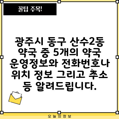 광주시 동구 산수2동 약국 중 5개의 약국 운영정보와 전화번호나 위치 정보 그리고 주소 등 알려드립니다.