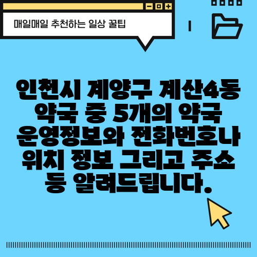 인천시 계양구 계산4동 약국 중 5개의 약국 운영정보와 전화번호나 위치 정보 그리고 주소 등 알려드립니다.