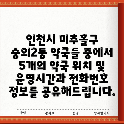 인천시 미추홀구 숭의2동 약국들 중에서 5개의 약국 위치 및 운영시간과 전화번호 정보를 공유해드립니다.