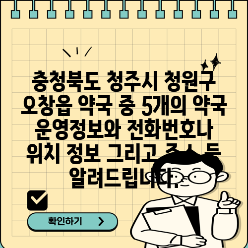 충청북도 청주시 청원구 오창읍 약국 중 5개의 약국 운영정보와 전화번호나 위치 정보 그리고 주소 등 알려드립니다.