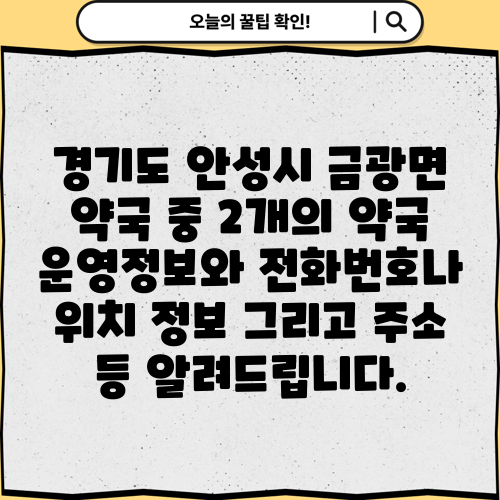 경기도 안성시 금광면 약국 중 2개의 약국 운영정보와 전화번호나 위치 정보 그리고 주소 등 알려드립니다.