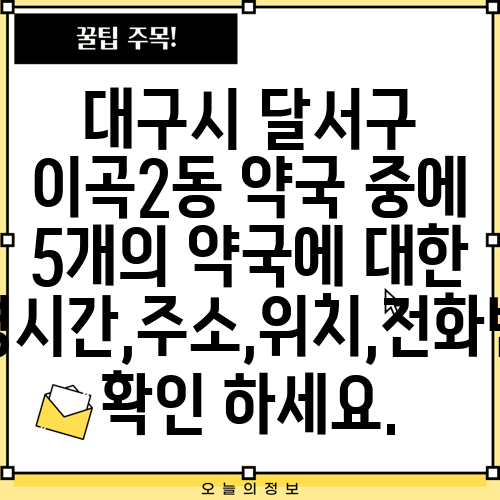 대구시 달서구 이곡2동 약국 중에 5개의 약국에 대한 운영시간,주소,위치,전화번호 확인 하세요.