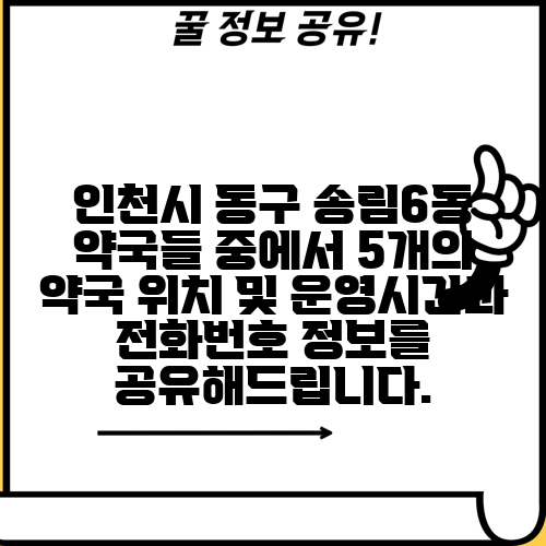인천시 동구 송림6동 약국들 중에서 5개의 약국 위치 및 운영시간과 전화번호 정보를 공유해드립니다.