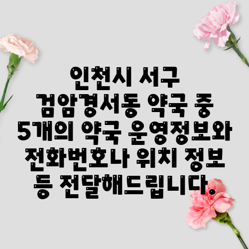 인천시 서구 검암경서동 약국 중 5개의 약국 운영정보와 전화번호나 위치 정보 등 전달해드립니다.