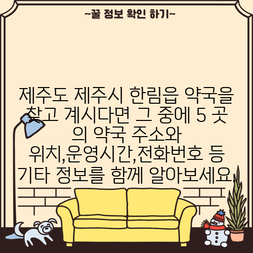 제주도 제주시 한림읍 약국을 찾고 계시다면 그 중에 5 곳 의 약국 주소와 위치,운영시간,전화번호 등 기타 정보를 함께 알아보세요.