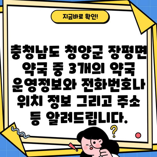 충청남도 청양군 장평면 약국 중 3개의 약국 운영정보와 전화번호나 위치 정보 그리고 주소 등 알려드립니다.