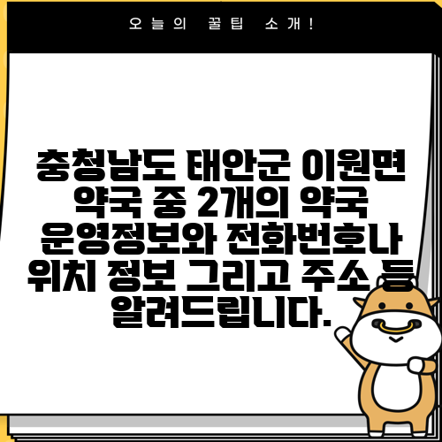충청남도 태안군 이원면 약국 중 2개의 약국 운영정보와 전화번호나 위치 정보 그리고 주소 등 알려드립니다.