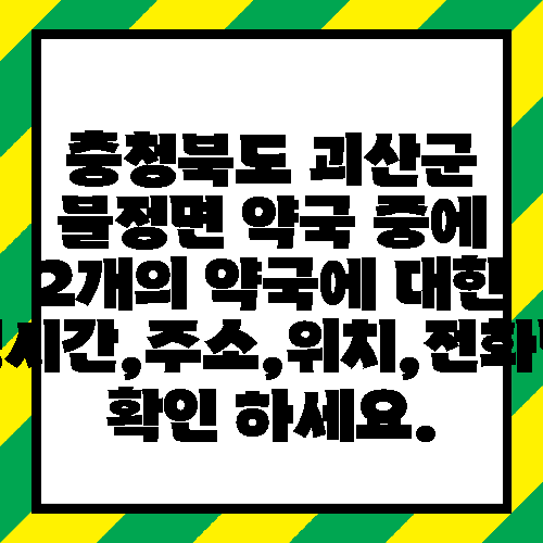 충청북도 괴산군 불정면 약국 중에 2개의 약국에 대한 운영시간,주소,위치,전화번호 확인 하세요.