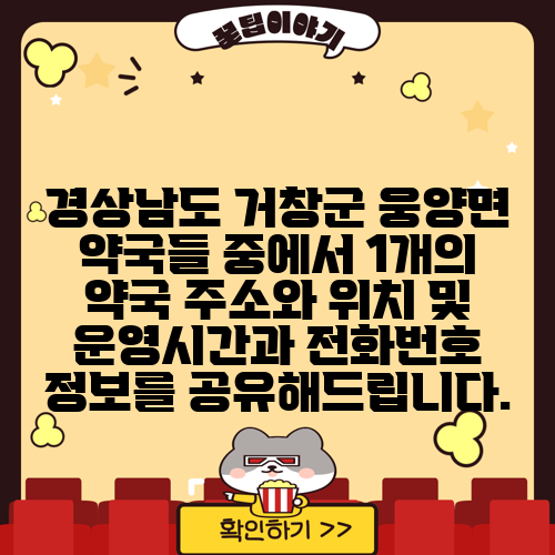 경상남도 거창군 웅양면 약국들 중에서 1개의 약국 주소와 위치 및 운영시간과 전화번호 정보를 공유해드립니다.