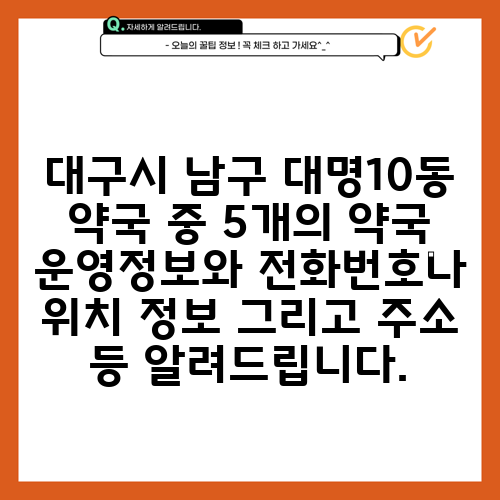 대구시 남구 대명10동 약국 중 5개의 약국 운영정보와 전화번호나 위치 정보 그리고 주소 등 알려드립니다.