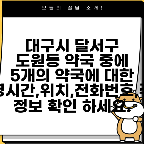 대구시 달서구 도원동 약국 중에 5개의 약국에 대한 운영시간,위치,전화번호,주소 정보 확인 하세요.