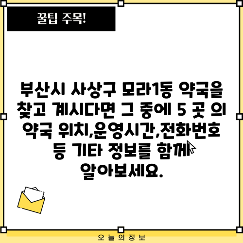 부산시 사상구 모라1동 약국을 찾고 계시다면 그 중에 5 곳 의 약국 위치,운영시간,전화번호 등 기타 정보를 함께 알아보세요.