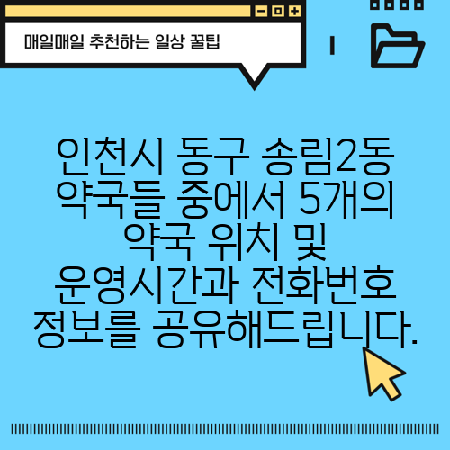 인천시 동구 송림2동 약국들 중에서 5개의 약국 위치 및 운영시간과 전화번호 정보를 공유해드립니다.