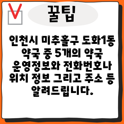 인천시 미추홀구 도화1동 약국 중 5개의 약국 운영정보와 전화번호나 위치 정보 그리고 주소 등 알려드립니다.