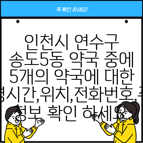 인천시 연수구 송도5동 약국 중에 5개의 약국에 대한 운영시간,위치,전화번호,주소 정보 확인 하세요.